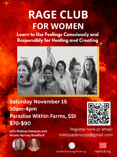 The purpose of Rage Club is to change your relationship to the feeling and emotion of anger so you can consciously and productively use the energy and information of anger as an adult in your daily life, without being possessed or overwhelmed by it.
